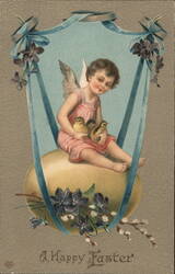 Cherub with Chicks on Easter Egg, Vintage Postcard