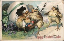 Whimsical Easter Chick & Bunny Delivering Eggs