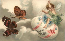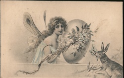Easter Fairy with Egg & Rabbit, Belgium Postcard