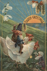Easter Greetings - Elves Riding Chickens