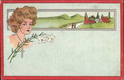 Girl with Easter Basket and Flowers, Vintage Hu...