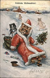 Father Christmas Cat with Kittens, Louis Wain