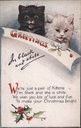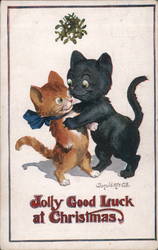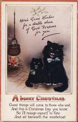 Two Black Cats with Mistletoe, Warm and Good Wi...