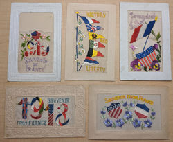 Lot of 5 WWI Patriotic Embroidered Silk Postcards