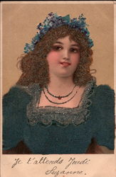 Art Deco Beautiful Woman, Real Hair Postcard