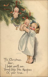 Kewpie Hanging Mistletoe, Merry Christmas Greeting
