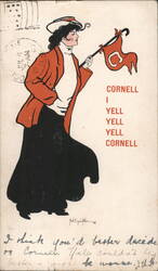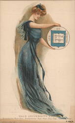 Yale Woman in Blue Dress with Large Letter "M" ...