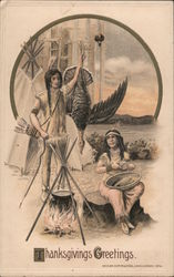 Indian Woman Defeathering Turkey - Glad Thanksg...