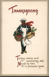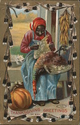 Black Woman with Pumpkin Near Foot Plucking Turkey