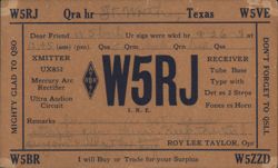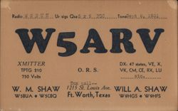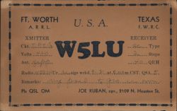 W5RJ Amateur Radio QSL Card, Fort Worth, TX