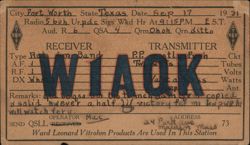 W5IA Amateur Radio QSL Card, Fort Worth, TX (1932)