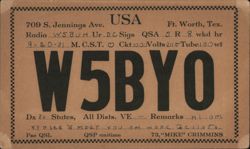 W5QY Ham Radio QSL Card, Fort Worth, TX