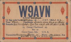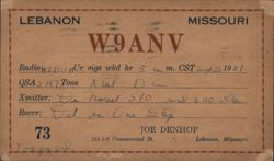 W9ANV Ham Radio QSL Card, Lebanon, MO 1931