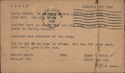 WNBF Radio Station QSL Card, Binghamton, NY, 1938