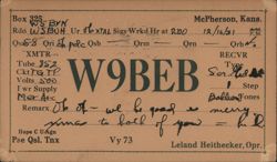 W9BEB QSL Card, Leland Heithecker, McPherson, KS
