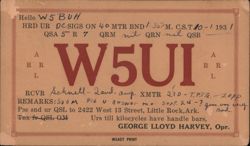 W5UI QSL Card to W5BUH, Little Rock, AR 1931