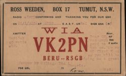 QSL Card VK2PN Ross Weeden, Tumut NSW to W5BUT ...