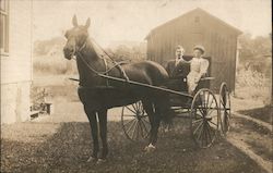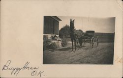 Man Outside Shack with Horse-Drawn Vehicle
