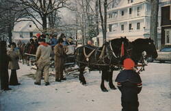 Horse-Drawn Sleigh Past Shamrock Cafe in Winter