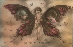 New Year 1919 Baby Cherub with Bag and Best Wis...