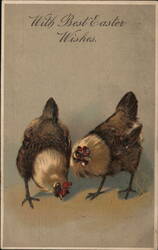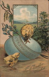 Chicken, Eggs, and Pussy Willows for Easter Greeting Postcard