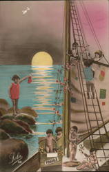 Children in Sailor Hats with Mistletoe in Snow ...