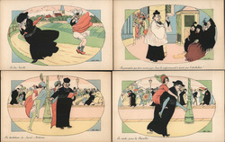 Woman in Striped Dress Feeding Rooster, Art Nou...