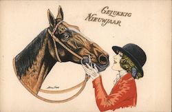 Bonne Année Woman with Mistletoe, Hand-Colored ...