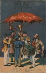 New Year's Eve Musicians on Snow-Covered Clock ...