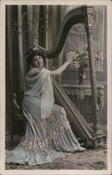 Woman Playing Harp, Iris Postcard, Antique Photo