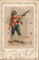 Young Girl with a Mandolin, Vintage Postcard