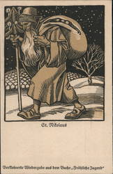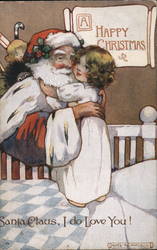 Santa Claus with Sack of Toys and Child, 'Wishi...