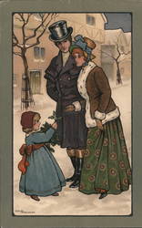 Elegant Woman by Fountain, Winter Scene - Art N...