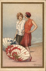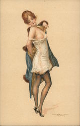 Art Deco: Woman reclining on a bed with Teddy Bear