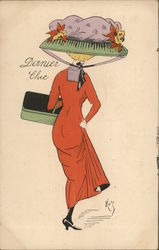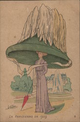 Deco Woman with Parasol, Fancy Hat, and Floral ...