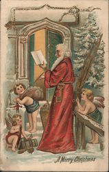 Santa Claus and Cherub with Holly and Bell, Mer...